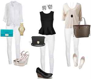 - Белые прямые брюки – для деловых леди следует надевать с классической рубашкой или блузой. Дополните образ блейзером или жакетом, и последний штрих – элегантные туфли-лодочки. Вечерний вариант – блузки или туники из шелка или атласа. Для свидания будет уместна полупрозрачная романтичного стиля блуза. Отправляясь на отдых, захватите к своим любимым брюкам майку, непринужденный топик, футболку, свитер и удобную обувь.