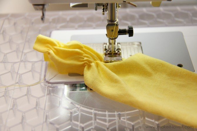 - Отстрочить один край вместе с резинкой.