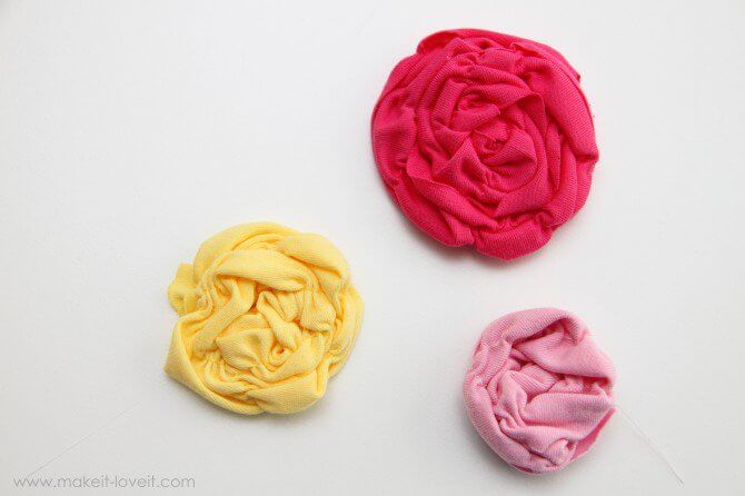 Для самых маленьких лучше выбирать мягкие материалы, которые не повредят нежную кожу новорожденных. Можно использовать старую одежду и сшить такое изделие из футболки. Два отреза ткани необходимо растянуть и обработать по краям. Одна часть используется в качестве самой повязки, а в качестве украшения подойдет цветок из второго отреза ткани. Полоска аккуратно скручивается и закрепляется с одной стороны, формируя бутон.