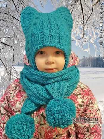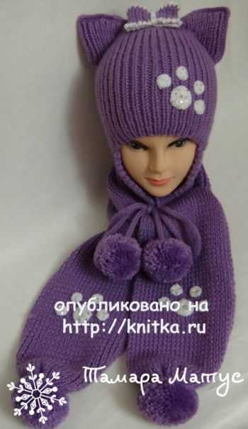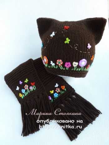 Шапка кошка и шарф спицами Шоколад от Марины Стоякиной