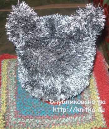 Шапка – кошка спицами. Работа Елены