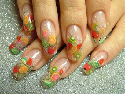 Конечно, рисунок можно сделать с помощью разных пластин для стемпинга или наклеить специальные водные наклейки для маникюра. Также стали популярными специальные фимо, которые продаются в виде трубочек из полимерной глины. Они режутся на маленькие круги, и помещаются на ноготь, снизу и сверху располагается шеллак или гель лак, и таким образом, фимо как бы находится в ногте.