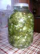 Крошку из капусты накрывают крышкой и ставят гнет, оставляя при комнатной температуре на неделю.