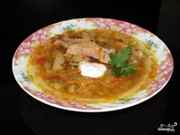 Готовые щи можно подать с хлебом, сметаной, зеленью.