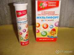 Мультифорт обладает еще более богатым витаминно-минеральным составом. Тринадцать различных витаминов, в том числе витамины группы В, А, С, РР и многих других, а также десяток самых необходимых человеческому организму минералов. Добавка из экстракта эхинацеи взрослым потребителям и шиповника для деток способствует выработке организмом иммунитета.