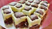 11. Нарезаем вдоль творожных полосок пирог и подаем на стол.