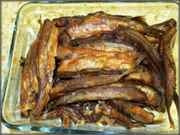 5. Чтобы шпроты имели копченый аромат, применяем приправу “жидкий дым” около 3 ст.л. Вместо нее можно положить в кастрюльку немного копченой рыбы или ее хвостовую часть, либо плавники.
