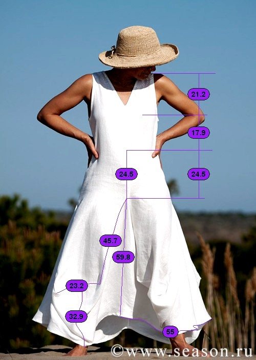 Основные размеры сарафана показаны на рисунке.