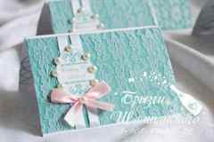 | Пригласительные | Пригласительные в форме открывающихся мятных коробочек с конфетти внутри. | Использование каллиграфического шрифта, нежных иллюстраций с цветами и птицами. |