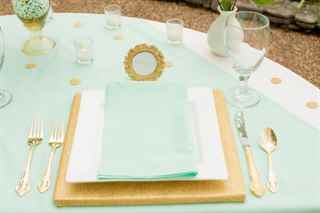 | Столы | Скатерти цвета слоновой кости или белого цвета, мятные салфетки, посуда с мятным декором или мятные подставки под тарелки. | Букеты из полевых цветов в мятных вазах, свечи в мятных подсвечниках. |
