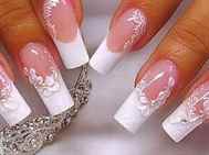 Очень популярным в последнее время стал маникюр в стиле кружева, он отличается своей нежностью и оригинальностью. Такой маникюр хорошо подойдет на свадьбу, если выполнить его светлыми тонами. Кружево может наноситься разными способами: либо мастер хорошо рисует, либо делается стемпинг, либо покупаются специальные наклейки, которые имеют узор кружева. Каждый маникюр нужно закреплять в конце специальным лаком, чтобы результат продержался дольше.