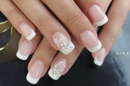 | Классический французский | Белый, бежевый, нежно-розовый | Стразы, жемчуг, кружево |