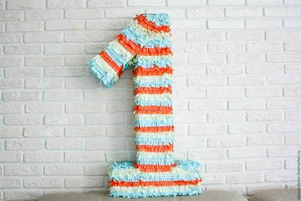 Итак, чтобы сделать большую красивую букву или цифру, надо определиться с ее размерами, материалом, из которого она будет сделана, и какой вид у нее будет – объемный или плоский. Если цифра будет плоской, можно просто вырезать из прочного картона ее заготовку, обклеить цветной бумагой и приступить к украшению элементами декора. Если же цифра будет объемной, необходимо сразу вырезать две ее стороны и с помощью картона склеить их между собой, чтобы цифра имела пространство внутри.