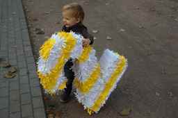Нитки должны сначала приклеиться к основанию цифры, и только потом можно обматывать их вокруг объемного пенопласта. Также можно использовать и не объемную цифру, внешний вид от этого не сильно изменится, но самостоятельно цифры стоять не смогут. Цвет ниток нужно подбирать под цветовую гамму всего мероприятия или же использовать яркие цвета. Цифра может быть обмотана нитками одного цвета или несколькими, это зависит от выбора организатора праздника.