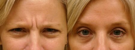- если в верхнюю часть круговой мышцы глаза будет введена слишком большая доза препарата, то это может спровоцировать резкий подъем брови;