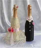 Украшение бутылок на свадьбу лентами: мастер-класс