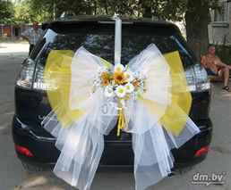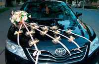 В основном автомобили украшают узкими лентами, лебедями и кольцами. Узкие ленты можно привязать к дверным ручкам и антенне. К ручкам двери можно прикрепить маленькие букетики цветов, перевязанные разноцветными узкими лентами. Можете использовать и широкие ленты, протянув их вдоль крышки багажника и капота.