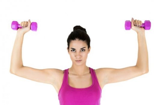 - Лежа на полу, взять гантели, поднять руки вверх и завести за голову. Выполнять тоже лучше в несколько подходов по десять раз.