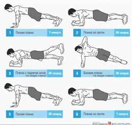 | Планка | Пресс, кора | Удержание статической позы с упором на локти и носки. |
