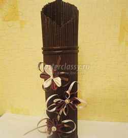 Необычная ваза для цветов своими рукамииз бамбука