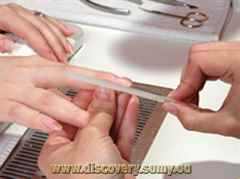 После снятия лака, нужно обработать ногти пилкой, придать им ту форму, которая больше всего нравится и подходит пальцам. Пилки необходимо подбирать под тип своих ногтей, так как неправильно подобранная пилочка может испортить ногти. С помощью пилочки на резиновой или картонной основе можно отшлифовать ногти, если нет специального баффа.