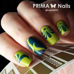 После того, как трафарет хорошо закрепился на ногте, необходимо сверху него нанести лак. Это может быть обычный лак, который имеет другой цвет, сочетающийся с основным лаком. Но для лучшего результата можно приобрести специальные лаки для стемпинга, они имеют матовое покрытие, поэтому на ноготь наносятся лучше и гарантируют долгий результат без изменений.