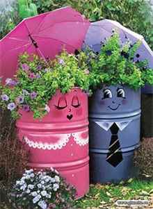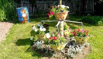 Ни одна дача не обойдется в своем декоре без замысловатых и оригинальных клумб. Неповторимости для цветочных строений можно добиться, если высадить их в ненужные емкости. Ими способны оказаться и бочки, и кастрюли, и даже тележки. Некоторые из дачников способны соорудить разнообразные штакетники для цветников.