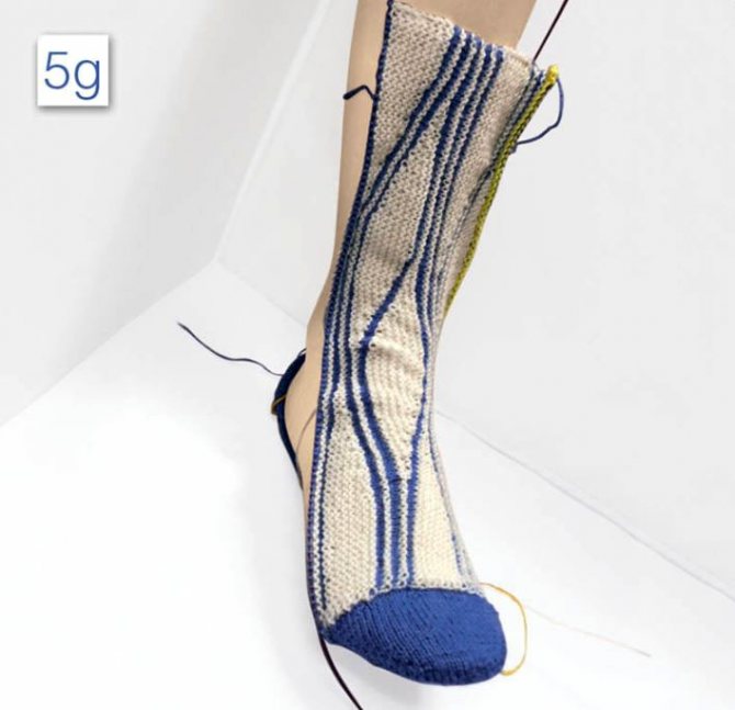 - Область средней части стопы свяжите лицевой гладью из 60 п.