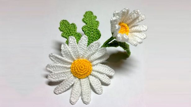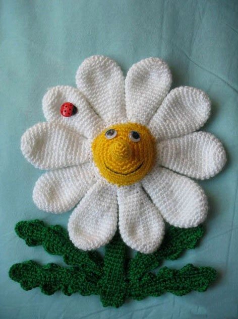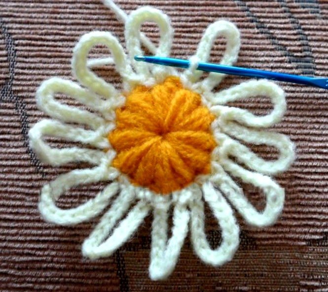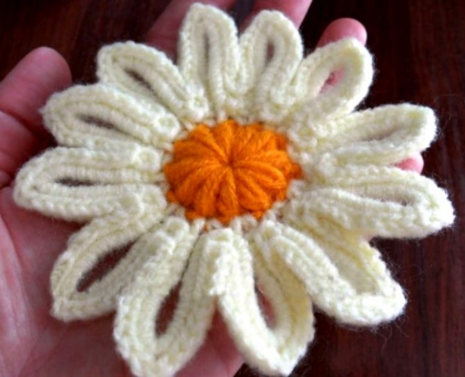 Вязаная ромашка с объемными лепестками