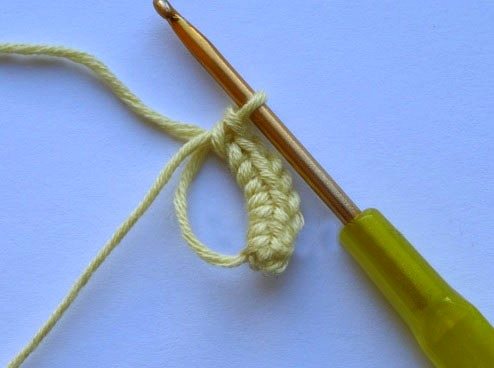 - 1р.: в 1-ую п. от крючка связать 6 столбиков без накида.