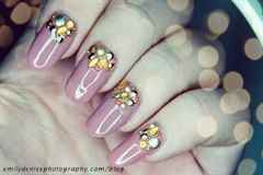 Следующим шагом после нанесения лака основного цвета необходимо разложить стразы на ногте, чтобы примерно знать, куда каждый страз клеить и видеть общую картину. Это поможет вам избежать многих ошибок, не придется переклеивать что-либо и разводить на ногтях грязь. Расположить стразы можно как угодно, важно только помнить, что невероятно осторожными надо быть с большими камнями, утяжеляющими маникюр и делающими ноготь визуально намного короче.