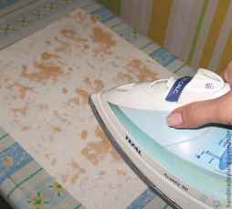 После этой процедуры, работа раскладывается на ровной поверхности для полной просушки. Глажка производится от середины к краям изделия с изнаночной стороны. Хранение готовых работ можно осуществлять, намотав их на картонное основание от бумажных полотенец. Также для этой цели подойдут картонные основания из-под фольги или пищевой плёнки.