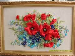 Разнообразие лент: Вышивание лентами может использоваться с различными типами лент — от атласных и органзовых до шелковых. Каждый материал придаёт работе уникальный вид и текстуру, а также позволяет создавать разные эффекты. Например, атласные ленты хорошо держат форму, что идеально подходит для создания объемных цветов.