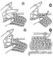 | Формирование вытянутой петли | 1. На крючке теперь две петли. 2. Провязать только первую петлю, оставив вторую на крючке. 3. Повторить пункты 1 и 2 для создания нужной длины вытянутой петли. |