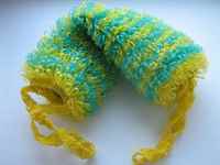 Полипропиленовую пряжу чаще используют для изготовления именно мочалок. И это совсем неудивительно. Полипропилен идеален для вязания такой вещи. Он обладает высоким уровнем износостойкости и имеет хорошую жесткость, что позволяет качественно удалять ороговевший слой кожи.