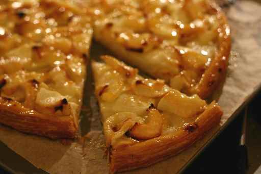 Большинство людей любят пироги из песочного теста, но есть также рецепты, помогающие сделать сочный пирог из слоеного теста. В данном случае проще всего купить тесто в магазине и приступить к готовке пирога. Потребуется 2 яблока, мука, 3 столовые ложки масла (сливочного), корица и сахар в количестве 2 столовых ложек. Яблоки нужно сразу помыть, разрезать и удалить сердцевину, после чего нарезать тонкими слайсами. Противень для пирога обязательно смазывается маслом и посыпается мукой, а тесто надо раскатать и вырезать из него круг.