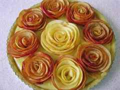 Тем временем, делаются розочки из яблок, при этом тесто не используется. Яблоки, которые остались лишними, смешиваются с соком и крахмалом, после чего выкладываются на тесто. Заключительным этапом нужно выложить все розы из яблок, посыпать сверху пудрой и отправить на 25 минут в духовку (температура 175 градусов). После охлаждения пирога, его можно есть.
