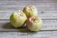 - Фарширование яблок: Наполните каждое яблоко ореховой начинкой, утрамбовывая ее, чтобы она не высыпалась во время запекания.