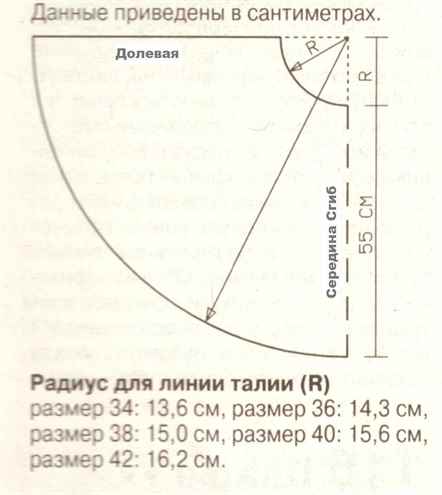 Теперь считаем, сколько нужно ткани: (Радиус + длина юбки) * 2 – это для одной детали, а у вас таких должно быть 2 на юбку-солнце.